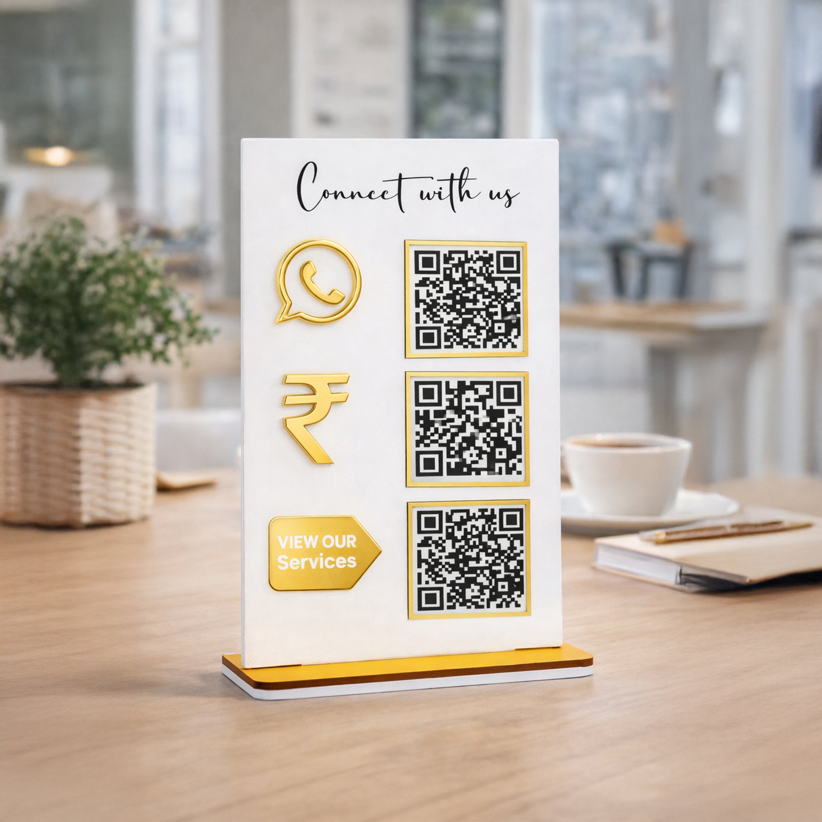 4 QR Premium Digital Catalog, Google review, Instagram, What's App, Payment Stand