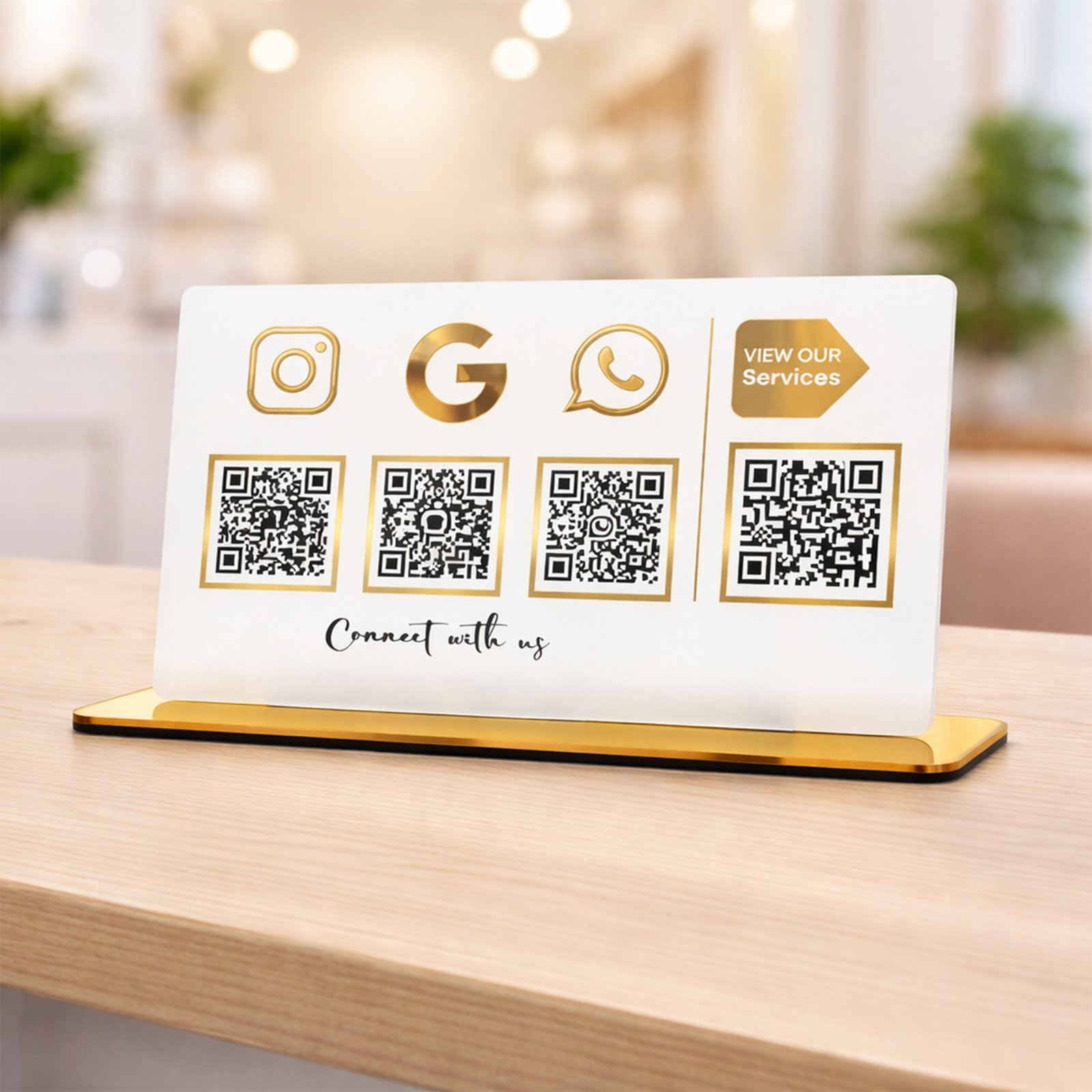 4 QR Premium Digital Catalog, Google review, Instagram, What's App, Payment Stand
