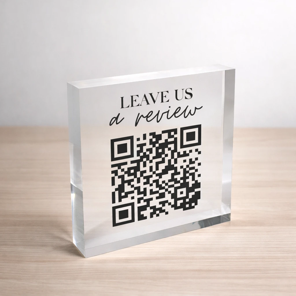 Google Review Acrylic Block Plaque, Custom QR Code Display